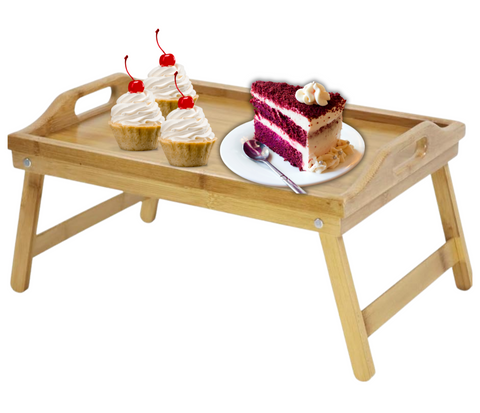 Bamboo Wooden Bed Tray With Folding Legs Serving Breakfast Lap Tray Table Mate
