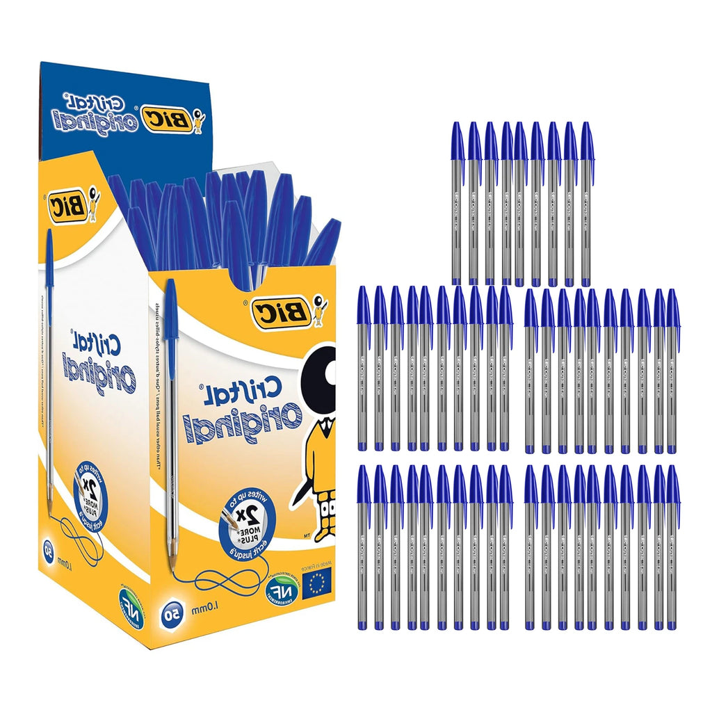 The classic BIC Cristal Original pen is a ballpoint pen, also known as a biro pen. The medium 1.0 mm point glides across the page with unmatched comfort for smooth, smudge-free writing. Efficient design that's simple and trusted. Includes a clear barrel for checking your ink level. The super-durable BIC Cristal Original pen has enough Blue ink to write for an average of 3 km.