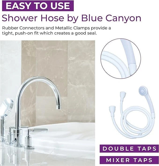 The shower hoses can fit on single and double taps with round or oval openings. Perfect for bathrooms without an overhead shower. They can be used to wash hair over the bath or even the kitchen sink. The double tap connection is excellent for creating a mixer of the water for sinks with separate taps. Perfect solution for washing pets indoors or outdoors. All are easy to use, portable, and rubber-made.