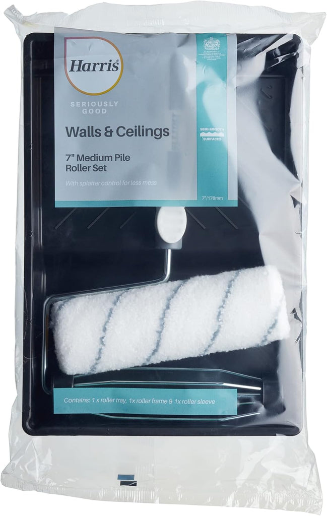 This Seriously Good 7" Roller set from Harris is for use when painting larger walls & ceilings, and woodwork areas. The roller is ideal for use on smooth & semi smooth surfaces, giving great results when used with emulsion paints.
