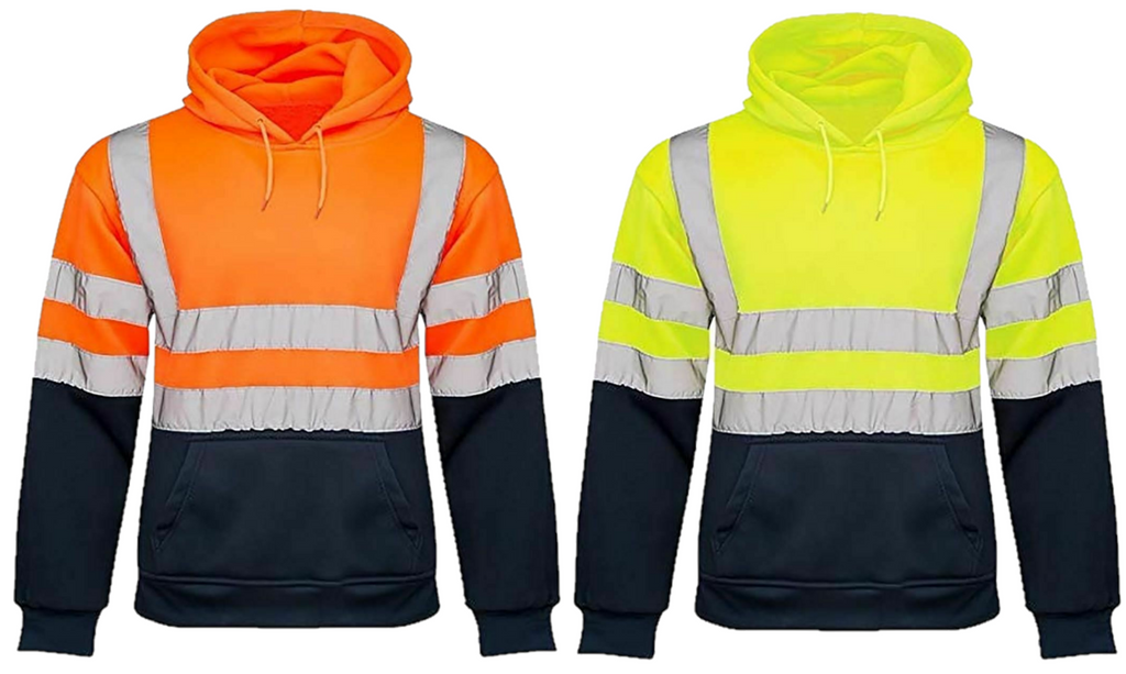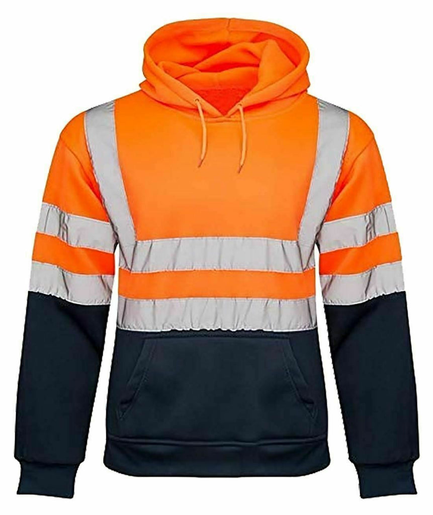Hi Viz Vis High Visibility Jacket Pullover Hoodie Work Hooded Fleece Sweatshirt