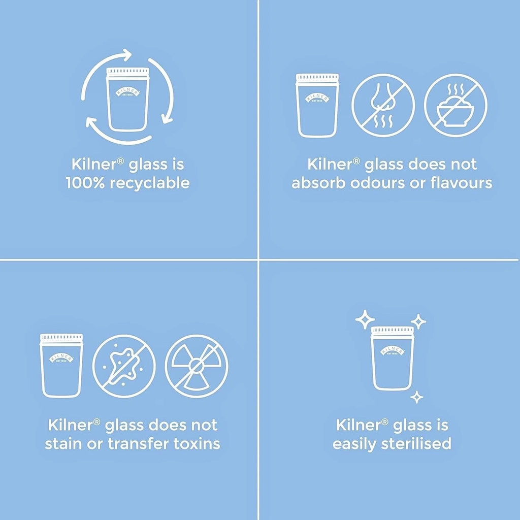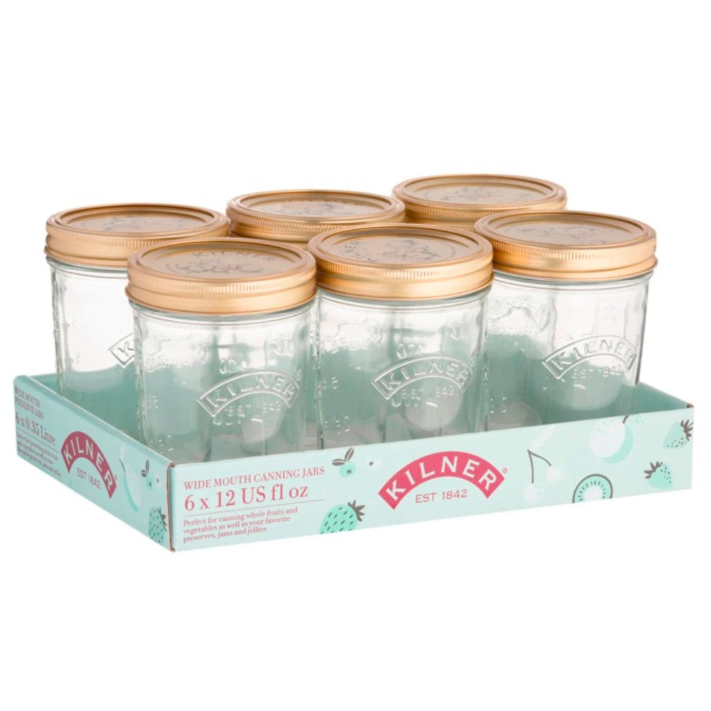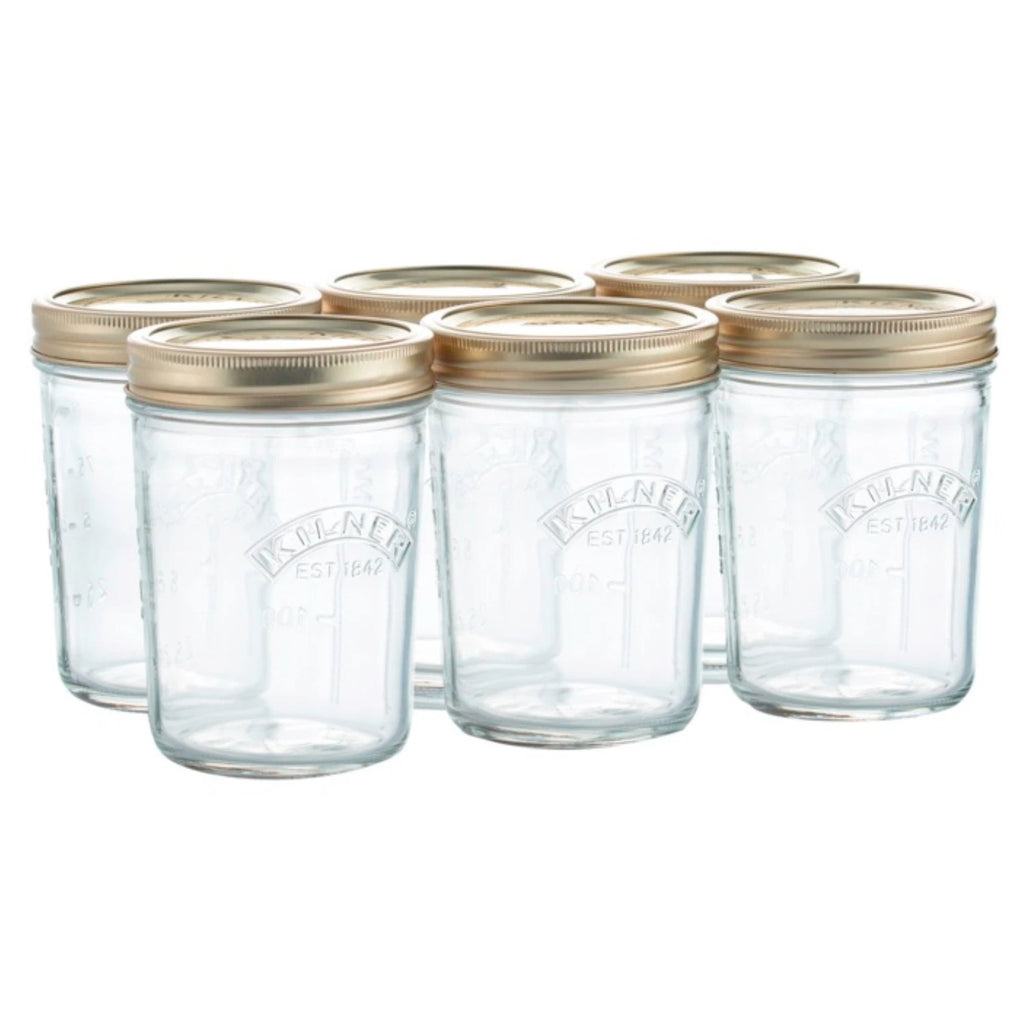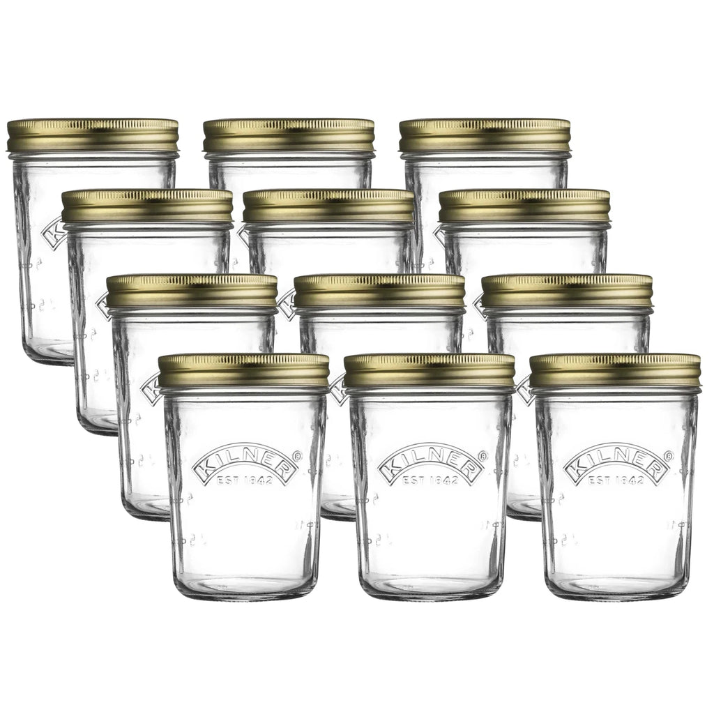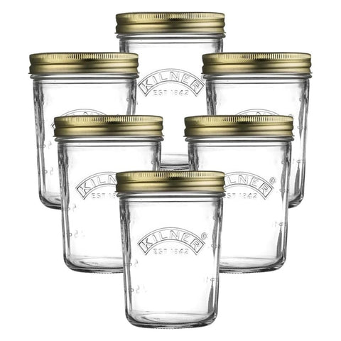 The Kilner® Wide Mouth Preserve Jar is perfect for storing and preserving home-grown foods. Featuring a 2-piece lid system which comprises a tin disc and screw band ensuring a secure vacuum seal is achieved, keeping the contents fresher for longer. The jar capacity is 0.35 litres / 350ml, as the wider opening allows for easy filling and decanting. The jar features embossed ML volume indicators on the side and is enhanced with the authentic Kilner embossed logo on the front.