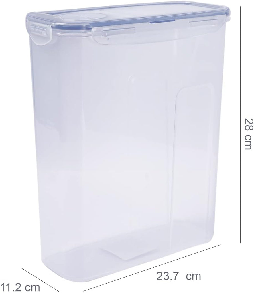 Upgrade your pantry organization with the LocknLock Clear Rectangular Plastic Food Storage Container, an airtight cereal dispenser available in sizes ranging from 870ml up to 4.3L. Perfect for both small and bulk storage, this versatile container is ideal for cereals, grains, pasta, rice, nuts, snacks, dried fruits, coffee beans, flour, sugar, and even pet food.