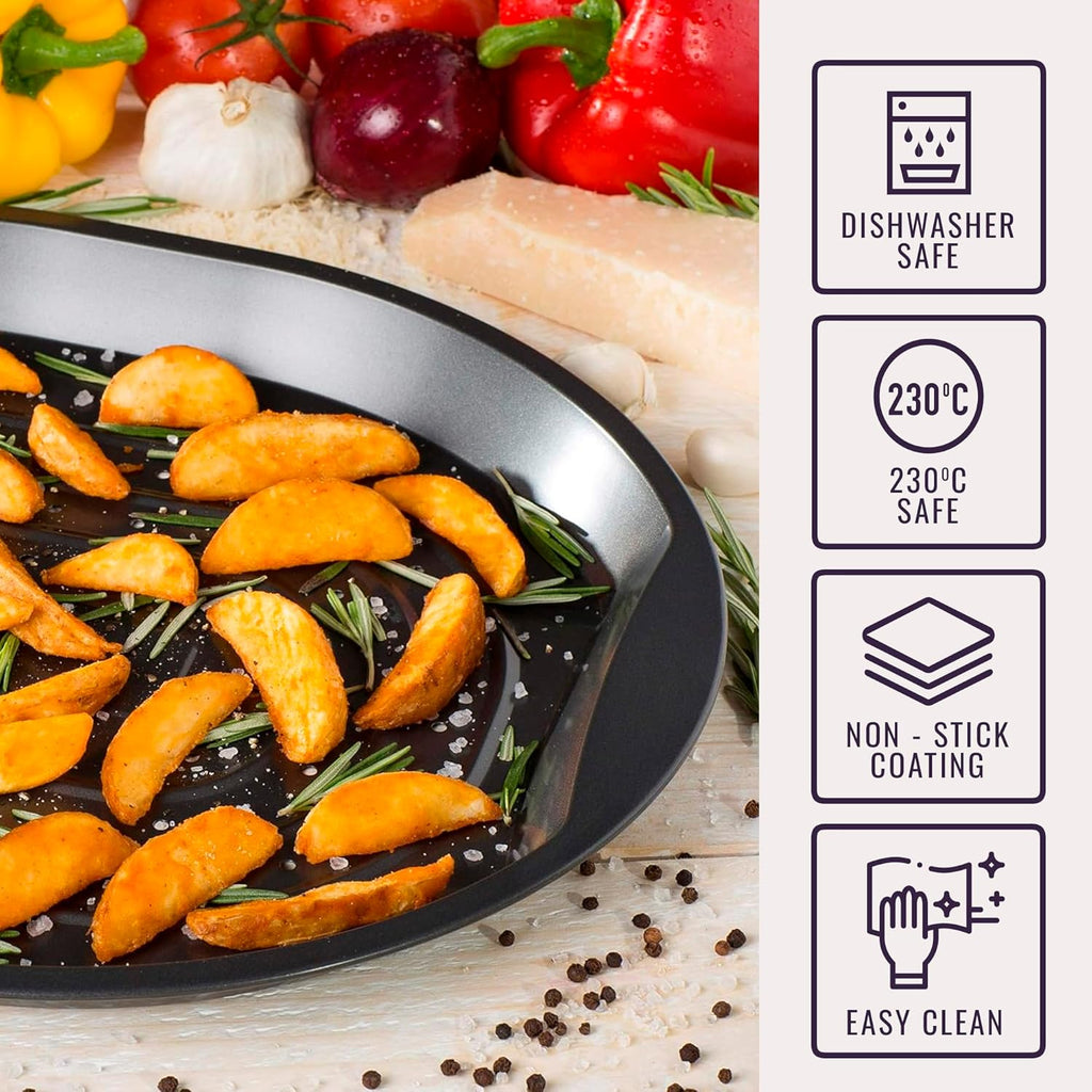 Elevate your home cooking with this versatile non-stick pizza tray, designed to deliver perfectly crispy pizzas, chips, wedges, and more. Its perforated design ensures even heat distribution, making it an essential addition to any kitchen.