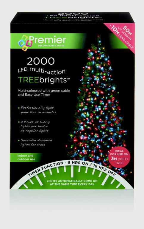 Bring your festive display to life with the Premier 2000 LED Multi Action Christmas Treebrights with Timer, perfect for both indoor and outdoor use. These premium string lights feature 2000 energy-efficient LEDs designed to create a dazzling glow across your Christmas tree, garden, or home décor. With a built-in timer function, the lights automatically switch on and off for hassle-free holiday decorating.
