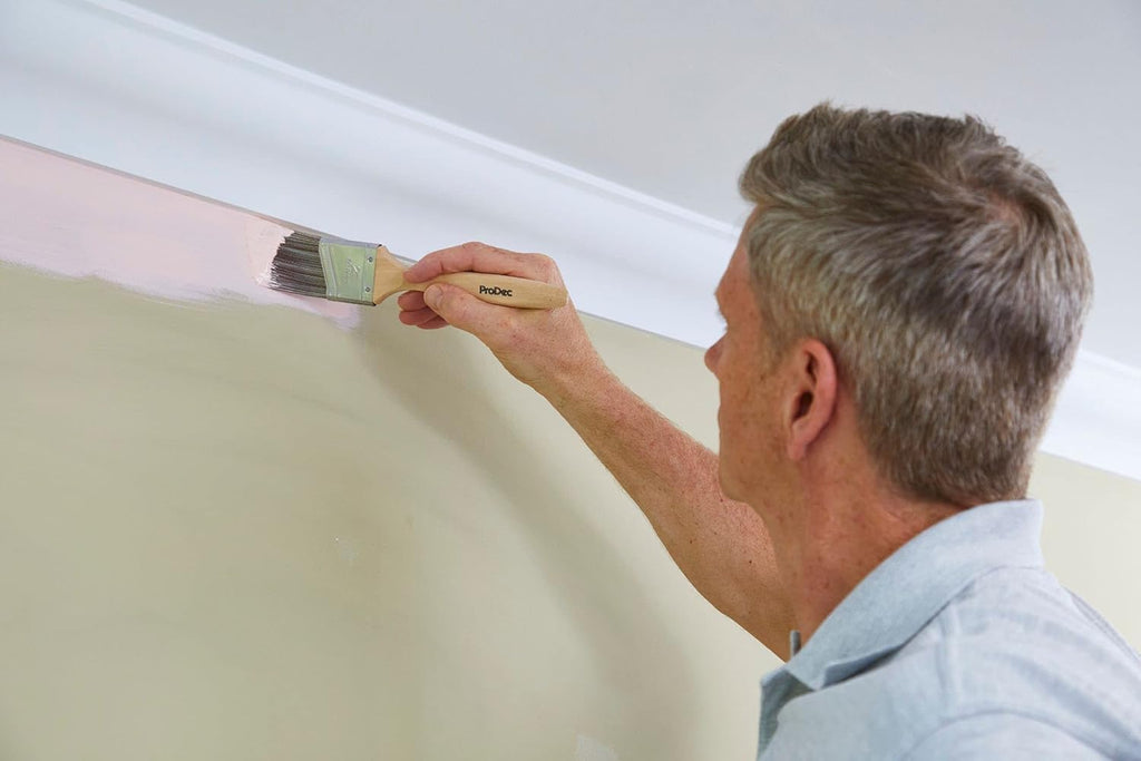 Ideal for water-based paints including emulsions (eg, matt, silk, eggshell), gloss and satin, as well as woodstains and varnishes. Slant cut head gives the optimum angle against the surface for cutting in edges on walls and ceilings, and against woodwork. Shaped wooden handle for maximum comfort, even during extended use.