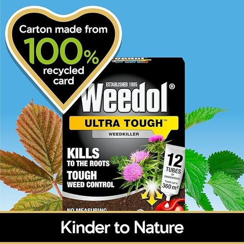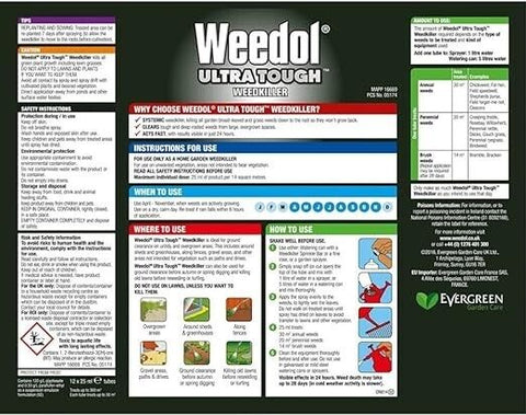 Weedol® Ultra Tough Weedkiller (Liquid Concentrate) kills tough weeds to the roots. It kills brambles, nettles, thistles, docks, and other deep-rooted weeds and is ideal for clearing untidy or overgrown areas. This product contains glyphosate and pyraflufen-ethyl.